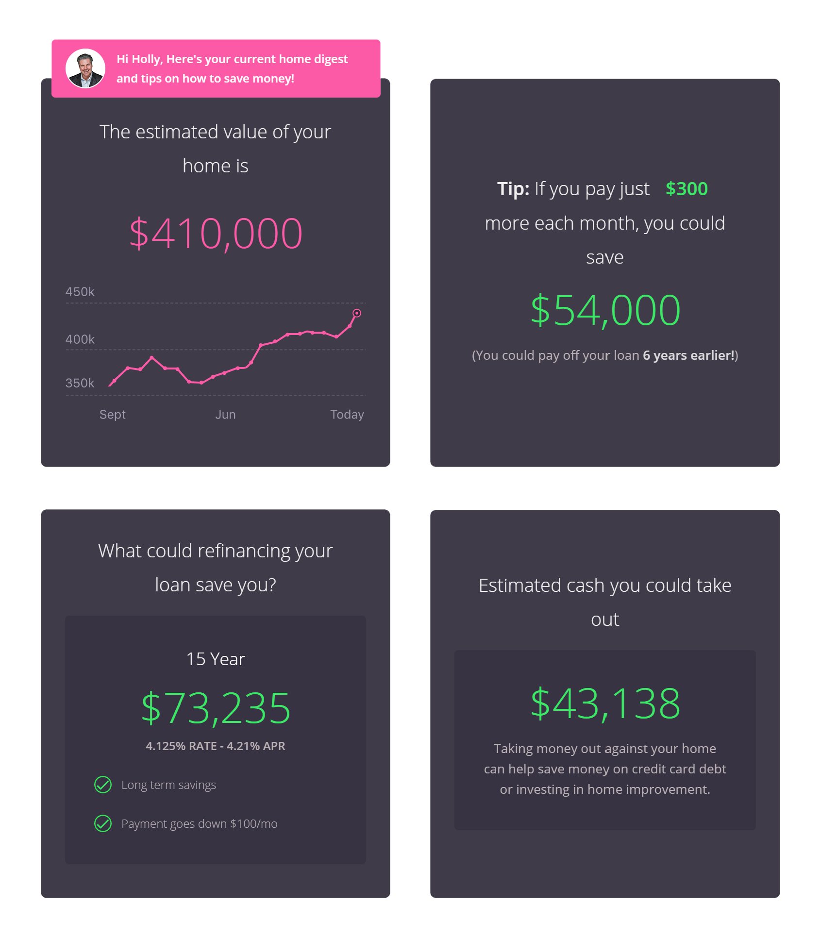 Our monthly report offers an intuitive financial dashboard, tailored to enhance your wealth-building journey with your most significant asset: your home.